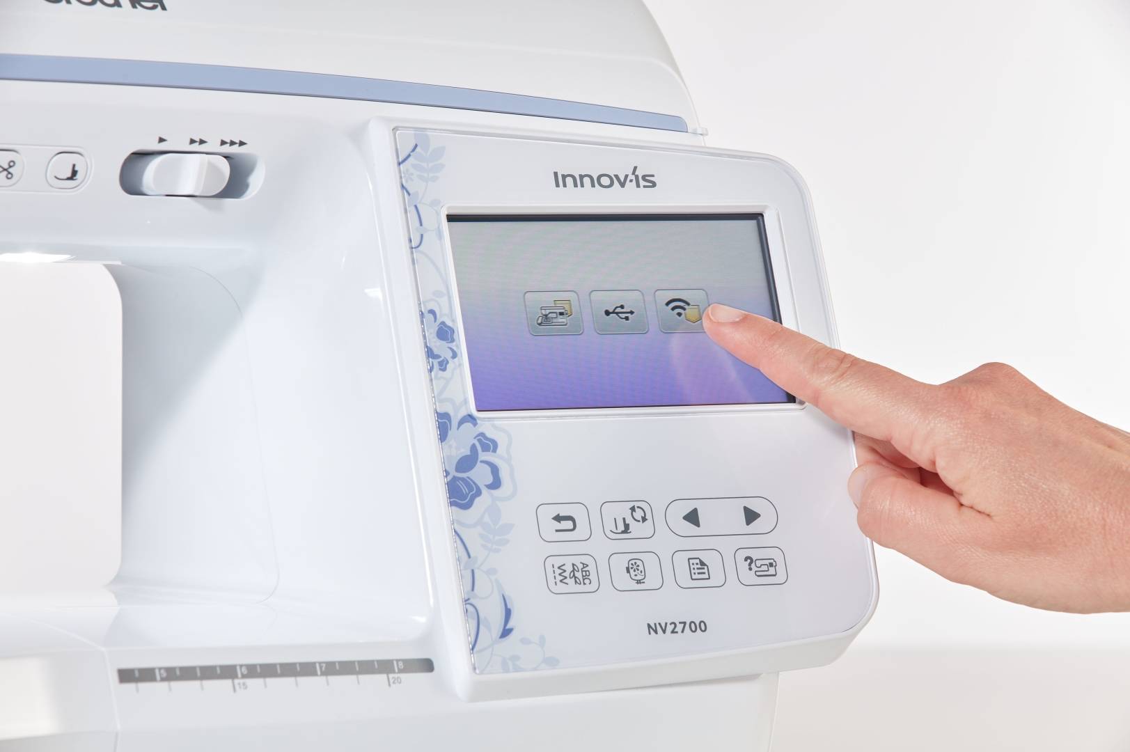 Selecteer een van ingebouwde borduurpatronen, lettertypes of stuur je patroon via WIFI naar de Brother Innov-is NV2700. Uiteraard heeft de Brother Innov-is NV 2700 ook een USB aansluiting.