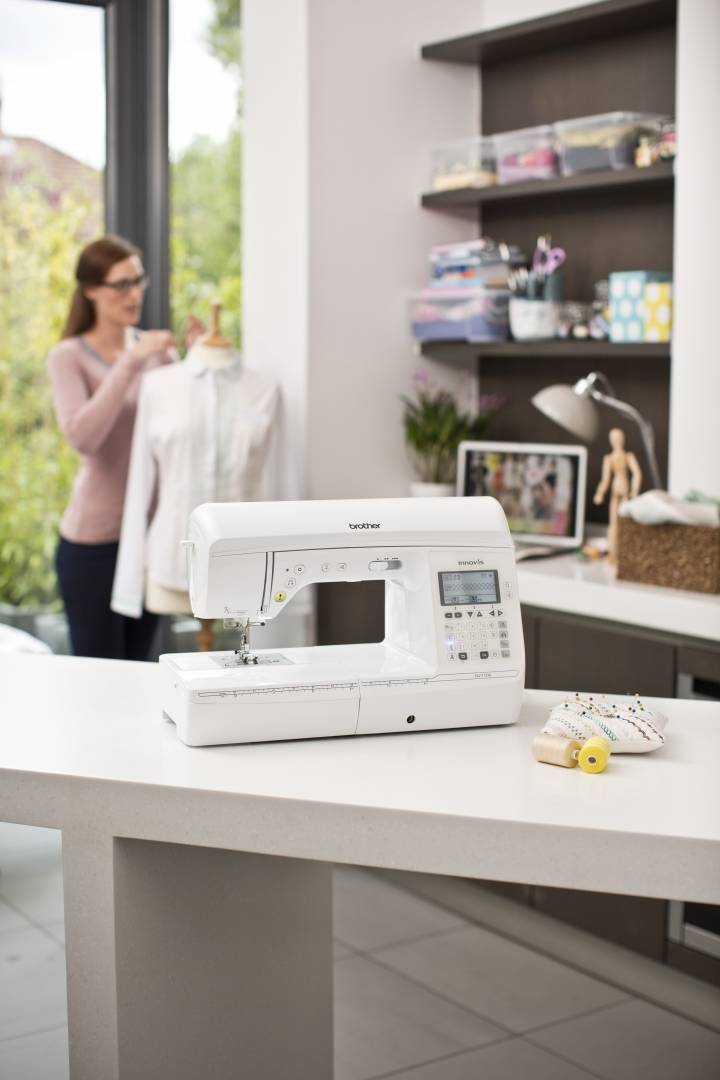 De Brother Innov-is 1100 is een zeer sterke naaimachine met 140 verschillende steken. De grote werkruimte rechts naast de naald van maar liefst 210 mm. is ideaal voor het naaien van uw kleding of voor quilten. De Innov-is 1100 beschikt over 10 verschillende vol-automatische knoopsgaten, een automatische draad-insteker en LED-verlichting.